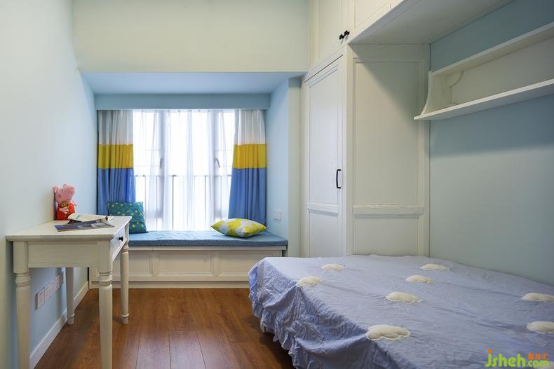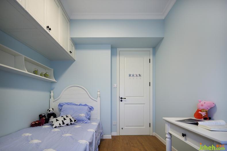 兒童房是小清新的風(fēng)格,淡藍(lán)墻壁、雅致床幔、木色地板、三色窗簾做點(diǎn)綴。放著小豬佩奇的白色書桌讓整個(gè)房間變得簡約而調(diào)皮,墻上的置物架也可以放置小物件,在好看的基礎(chǔ)上節(jié)約了空間,美觀又實(shí)用。