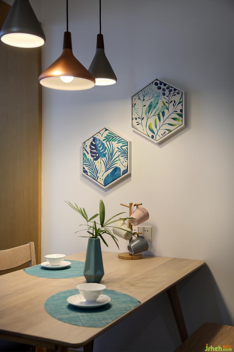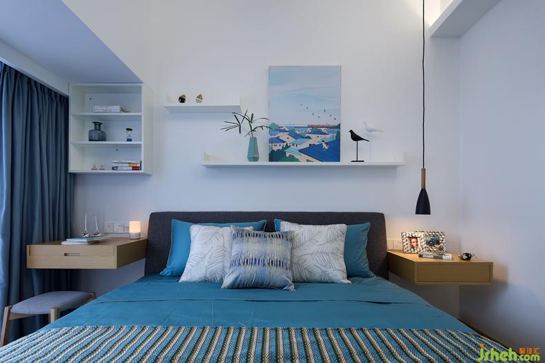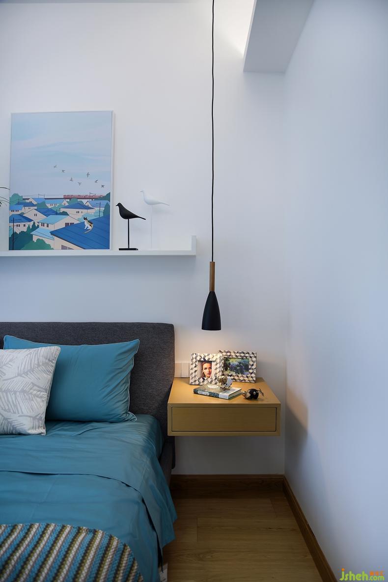 空中灑下斑駁的陽光,讓人不經(jīng)意間就沉迷在這愜意溫馨的環(huán)境中。留意到既能擺放飾品,又能當書桌的懸空的床頭柜,真是別有一番風味的設計,不拘泥于形式,隨性又大方。
