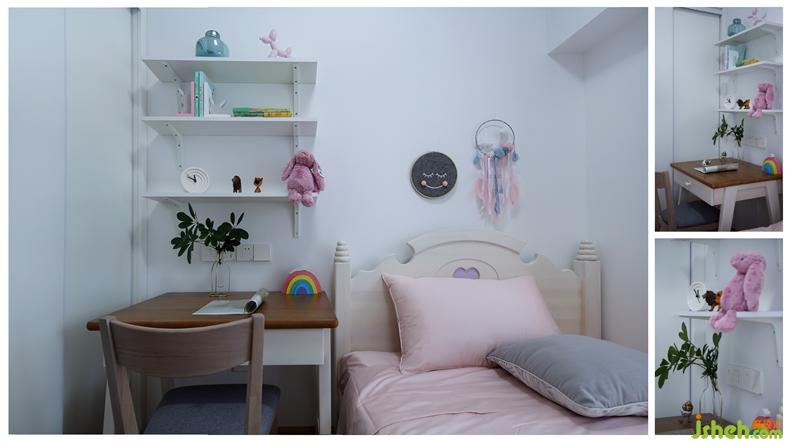 我們來到兒童房,粉床帶綠植,是來自櫻花的美妙禮贊,天真無邪的輕柔格調(diào)是父母為其傾注的無限愛意。香檳粉散發(fā)的甜美風最適合少女特有的嬌俏,可愛的飾品與綿軟的布藝是兒童房一貫的標配。