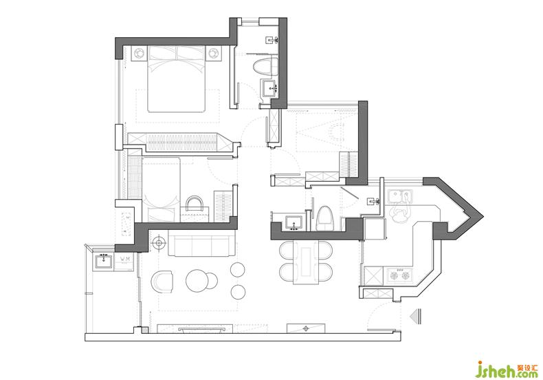 走進(jìn)廚房,幾何造型的線條感,搭配高級灰的色調(diào),高級又舒適。忽的想起鄧麗君的《又見炊煙》,夕陽有詩情,黃昏有畫意。突然腦洞大開,不自覺的浮現(xiàn)伉儷情深的畫面,我為你洗手做羹湯,你為我添妝描眉。