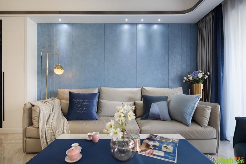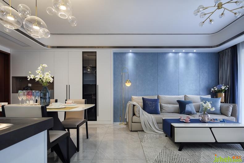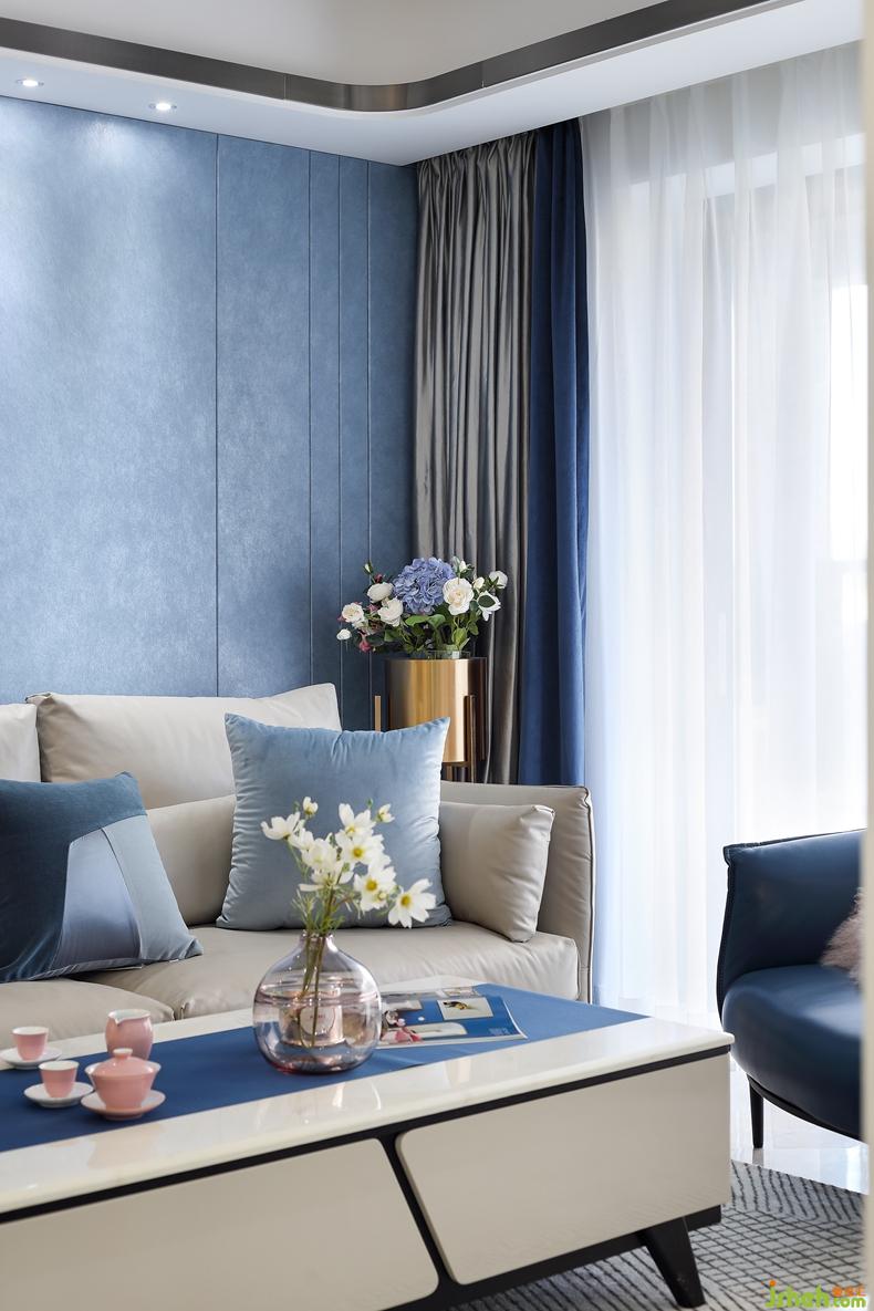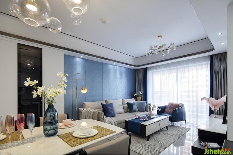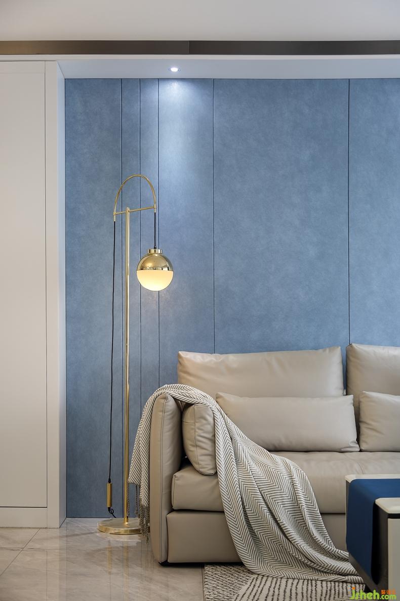 客廳的沙發(fā)背景墻采用了雅致的藍(lán)色硬包,與電視背景墻的白色形成強(qiáng)烈的視覺(jué)沖擊,使空間富有層次。在偏冷的基調(diào)上,恰到好處的是水晶球般的落地?zé)?,暖暖的光線,暈開(kāi)了空間的冷調(diào),將家的溫度絲絲沁入其間。