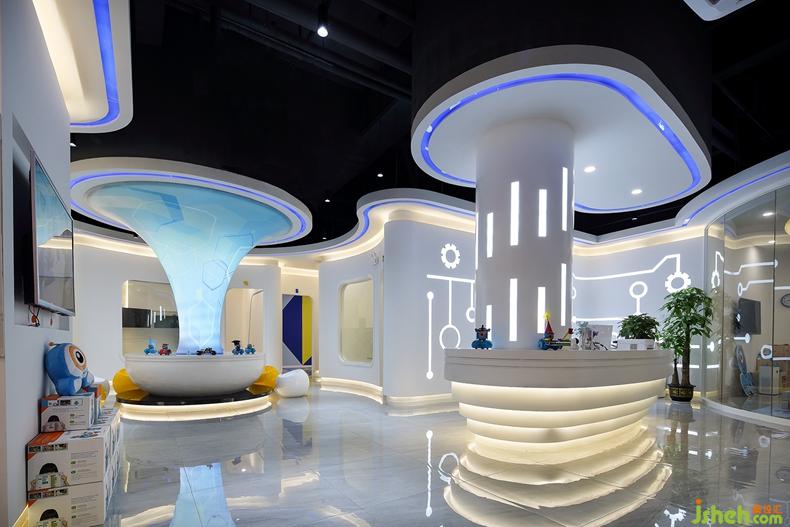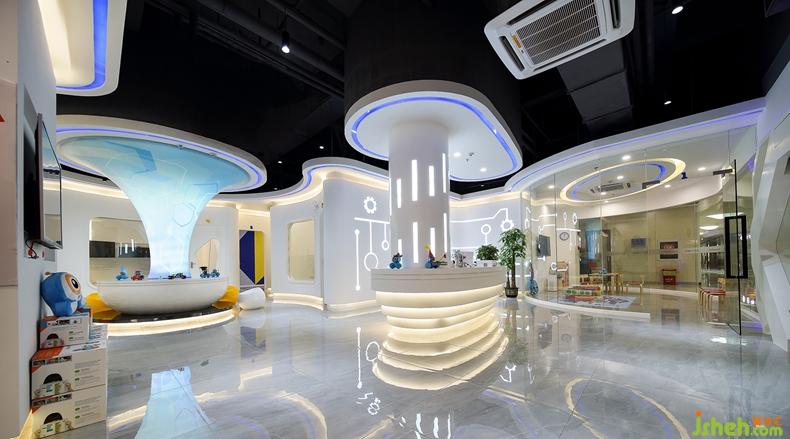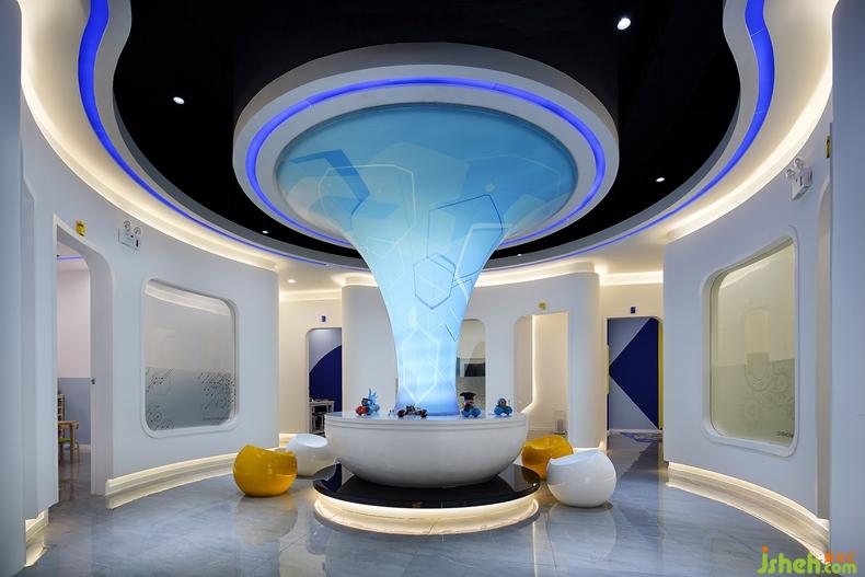 充滿現(xiàn)代科技感的設(shè)計(jì),會(huì)讓孩子們想起最喜愛的科幻動(dòng)畫和電影,就像是這造型獨(dú)特的柱子,用軟膜將燈管包裹,一開燈,藍(lán)色燈光注入,產(chǎn)生強(qiáng)烈的視覺沖擊,好似外星人的傳送門。