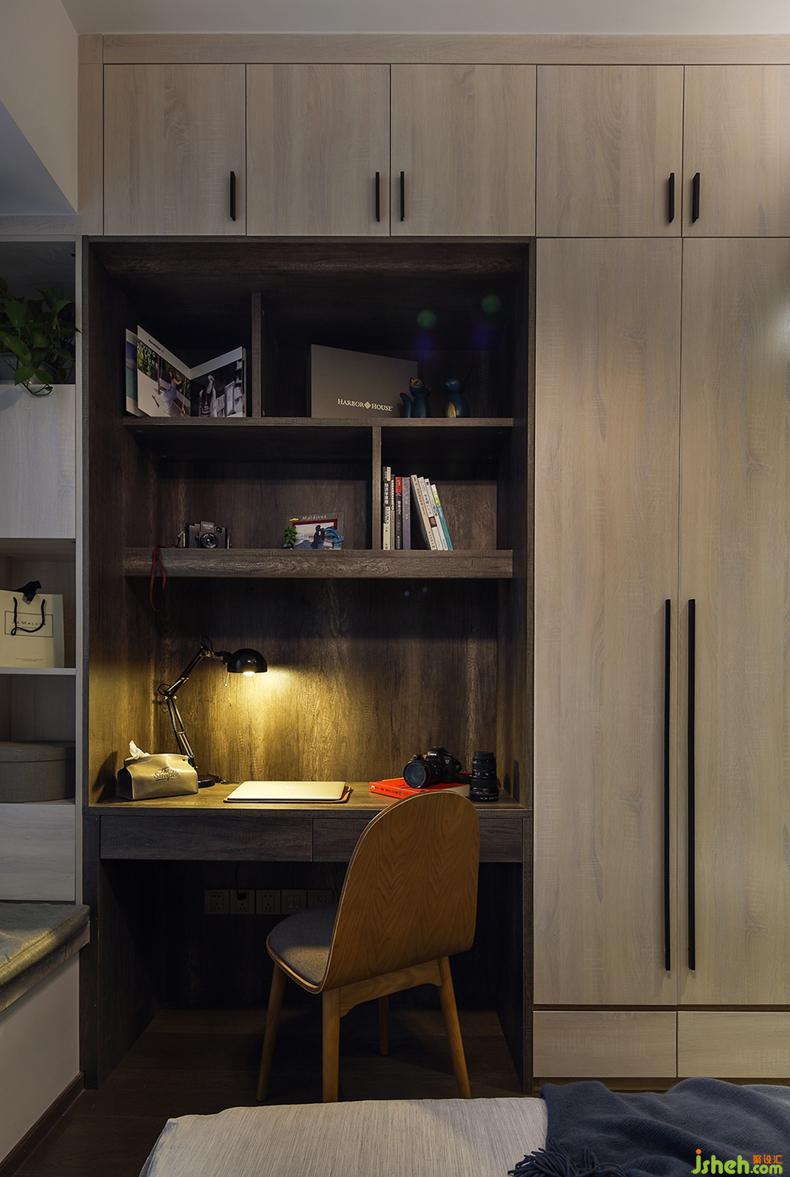 深夜工作可能是大多數(shù)深圳人的常態(tài)了,特意將衣柜的一部分設(shè)計(jì)成書桌,既節(jié)省空間也方便工作。在深色的懷舊情懷中,融入了現(xiàn)代生活的簡約,一切都恰到好處。