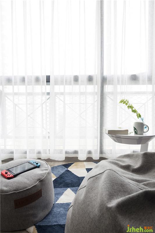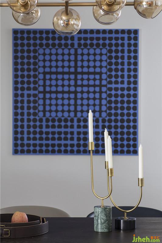 客餐廳采用一體化設(shè)計(jì),沒有設(shè)置隔斷,減少了空間的壓抑感和擁擠感,視覺上也更加通透。餐桌周邊的掛畫特意選擇了跳脫的藍(lán)色,豐富了空間層次感。