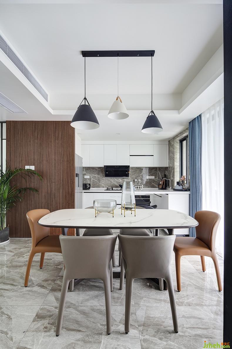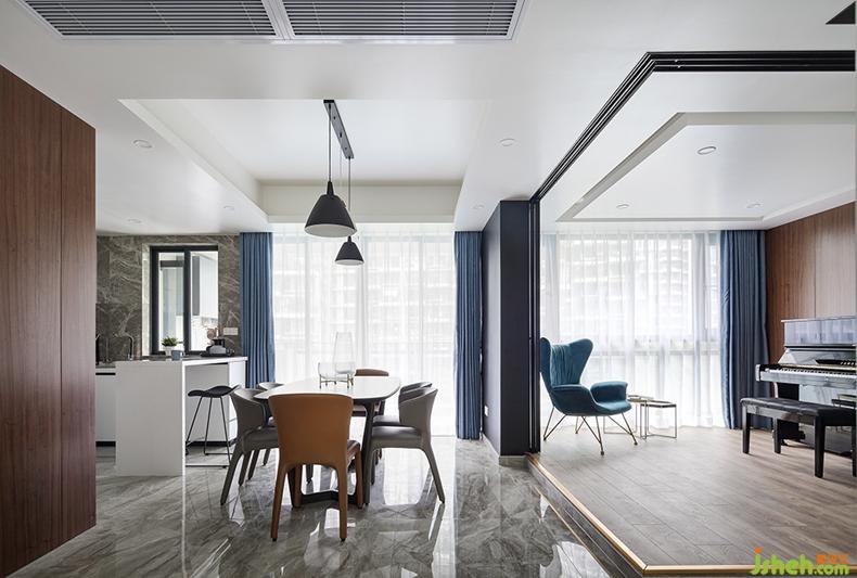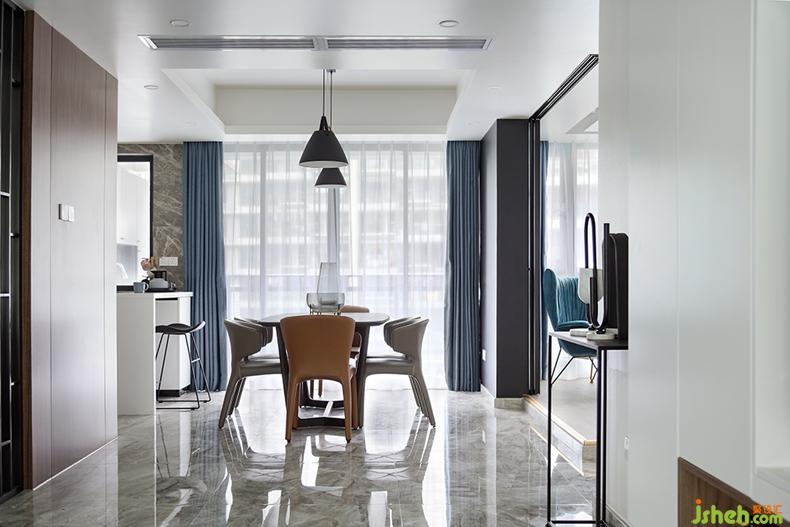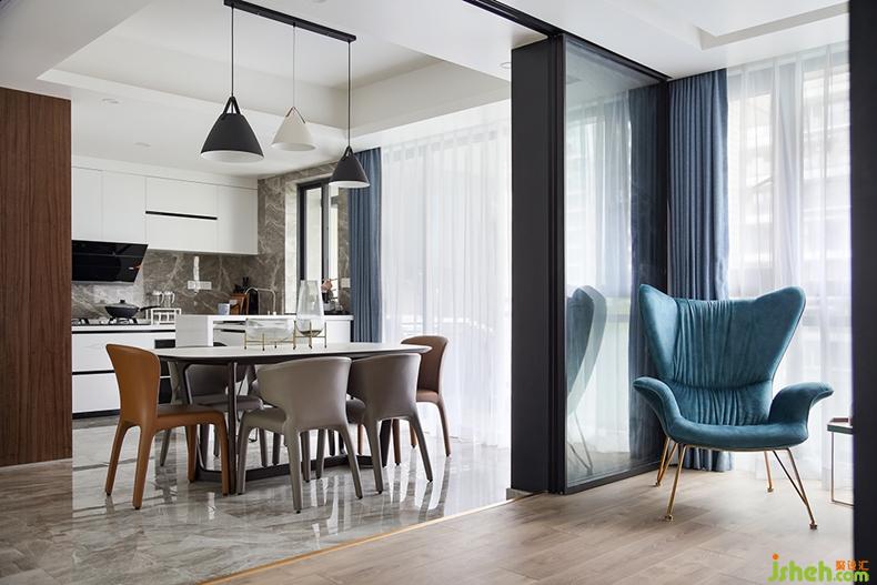 如需將不同的功能區(qū)域進(jìn)行劃分,并非只有砌墻才能解決,使用窄邊玻璃推拉門隔出多功能房,隨用隨推拉,保留光線的穿透性,與餐廳、廚房隔而不斷,兼顧時(shí)尚與實(shí)用。