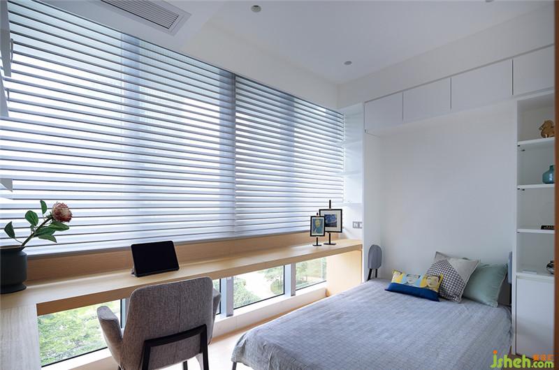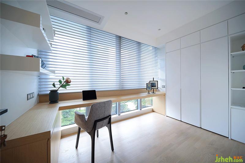 多功能房延續(xù)了整體的簡(jiǎn)約風(fēng)格,選用白色+木色的絕佳組合也讓整個(gè)空間更顯精致。在房間內(nèi)部有一個(gè)隱藏式的翻版床,關(guān)合時(shí)與其他柜體融為一體,視覺上的整體感很強(qiáng);需要時(shí)可將翻板床打開,成為一個(gè)標(biāo)準(zhǔn)的臥室,十分靈活。