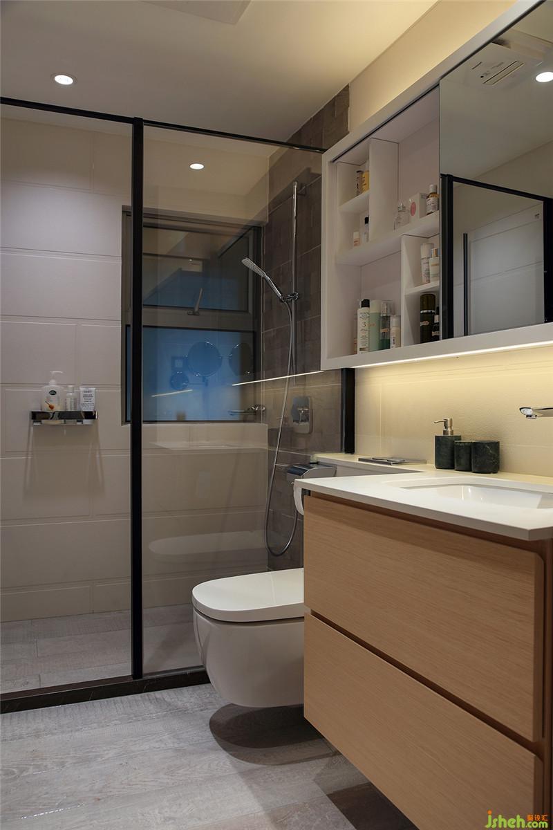 美感來(lái)源于對(duì)生活的熱愛,精心布置后,就連衛(wèi)浴間都熠熠發(fā)光。特意選用的推拉式鏡柜不僅滿足了收納和照鏡子的需求,還增加了輔助光源提高亮度,讓照鏡子更加清晰,也增添了空間的氛圍。深圳裝修公司