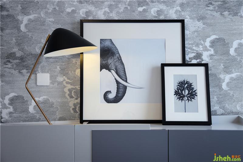 床尾是整面的自然系列網(wǎng)紅墻紙,云朵圖案極度逼真,充滿巴洛克式的超現(xiàn)實風(fēng),浪漫又別具一格。輔之以造型獨特的五金臺燈和黑白凈色生態(tài)系掛畫,過濾掉一切復(fù)雜的色彩,越發(fā)烘托出室內(nèi)佼佼不群的優(yōu)雅氣息,讓人得以在喧囂日常中抽身出來,覓得自己的一方清凈之處。