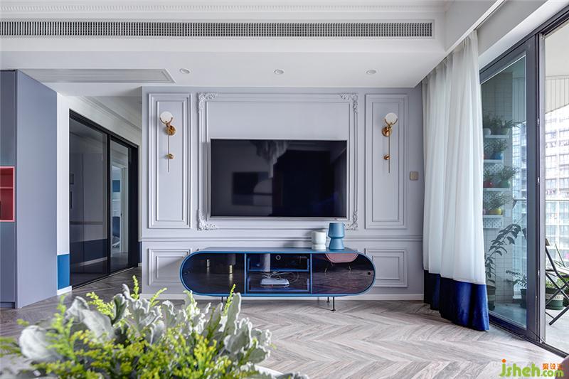 A:最喜歡電視背景墻的法式雕花和線條的整體造型,搭配得恰到好處。電視墻相對于房子面積來說寬度略顯不足,但有了線條的裝飾,反而是一個亮點。