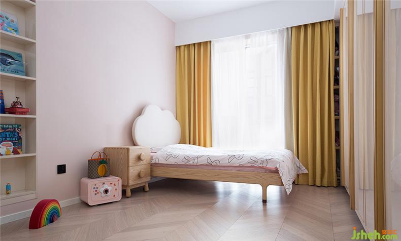 兒童房將收納空間做得比較充足,玩具和圖書都有自己的專屬位置,就連與窗戶轉(zhuǎn)角的凹位處也做了一個玩具展示柜。室內(nèi)設計師留出地面空間讓孩子自由玩耍。