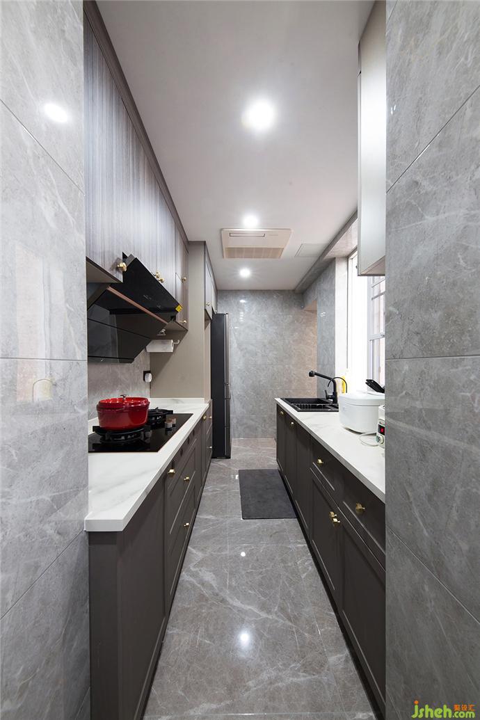 白色的熱氣從鍋中不停溢出,勾人的菜香飄渺……置身于黑、白、木色構(gòu)成的廚房,真是一場甜蜜且可口的邂逅。