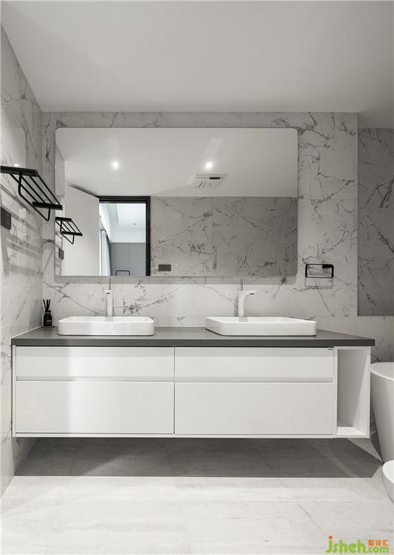 主衛(wèi)以大理石材質(zhì)為主,更顯高端大氣、其韻悠揚(yáng)。雙臺(tái)盆和大鏡面的設(shè)計(jì)讓空間更加明亮通透,彰顯一種美好、精致的生活態(tài)度。