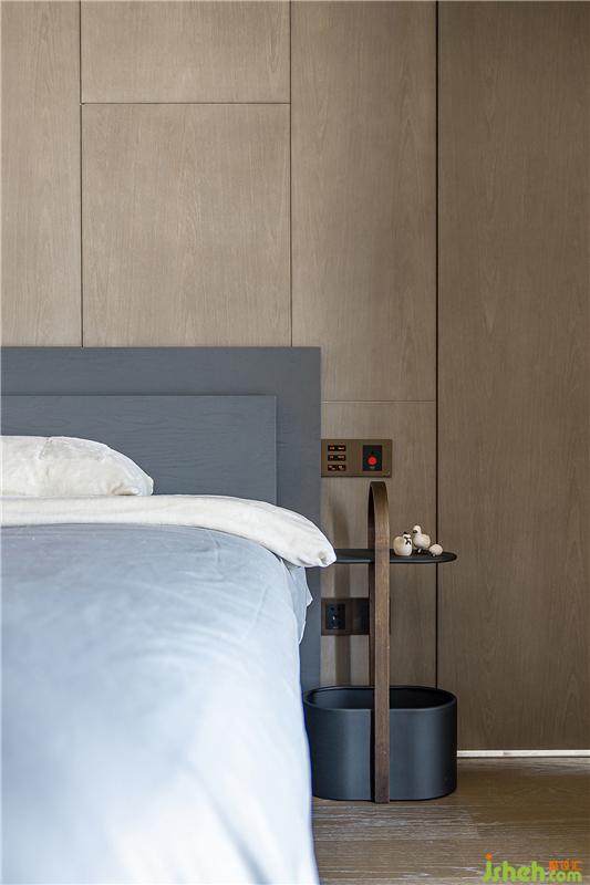 主臥家具以高級(jí)灰質(zhì)感為主,靜謐的色調(diào)也使空間充滿寧?kù)o的氣息。床頭背景墻改造成了整面水洗秋香木紋的護(hù)墻板+隱形門(mén),令空間更加平衡,既有工業(yè)風(fēng)的粗獷感,造型又很簡(jiǎn)約,與現(xiàn)有裝修基礎(chǔ)完美融合。