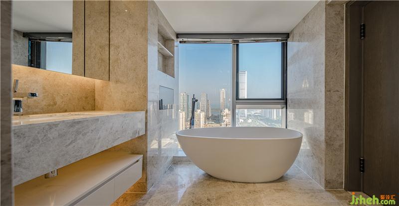 浴缸區(qū)風景獨好,可以一邊泡澡一邊看海,度假級體驗!一側(cè)墻體順勢做了壁龕,洗浴用品可隨手放置,既美觀又實用。