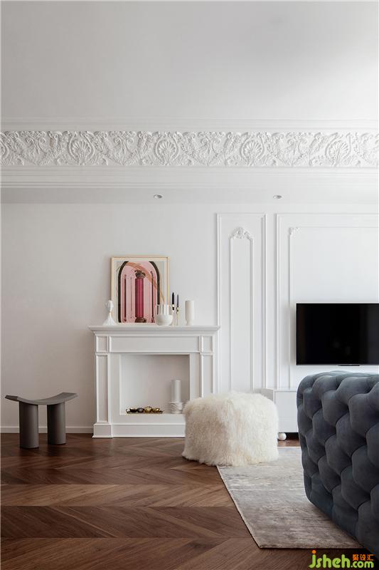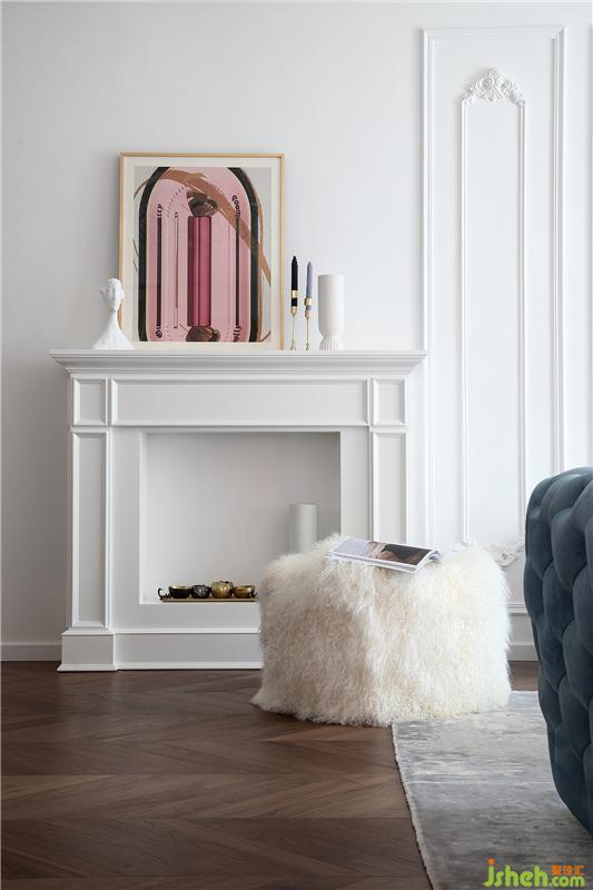 以烤漆壁爐的形式取代傳統(tǒng)邊柜,造型上與背景墻線條元素相呼應(yīng),更具視覺(jué)延伸感,為生活增添了儀式感。陳設(shè)的三兩組軟裝使空間靈動(dòng)而優(yōu)雅,隨性打開(kāi)的書(shū)本恰好點(diǎn)亮了室內(nèi)的文藝氛圍。仿佛還原了與家人聊天、品茶、閱讀的生活情境,在空間藝術(shù)韻律的熏陶下,演繹極具個(gè)性的法式輕奢風(fēng)情。