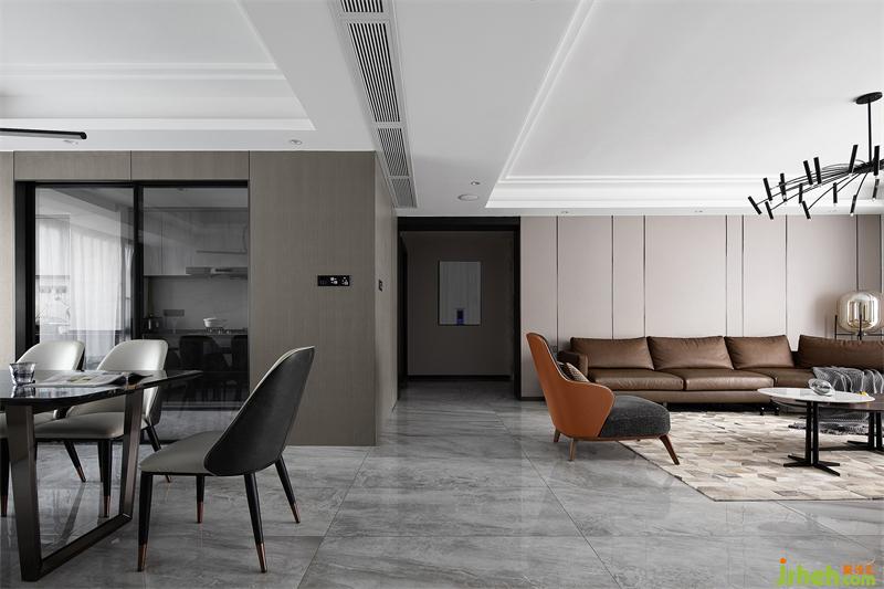 客廳選用造型獨特且實用的棕色折角沙發(fā),既可實現L型沙發(fā)坐躺貴妃位的功能,走位又方便靈活、不擁堵,搭配幾何圖案的手工地毯及灰色針織撘毯,一種自在、優(yōu)雅的家居氣質呼之欲出。