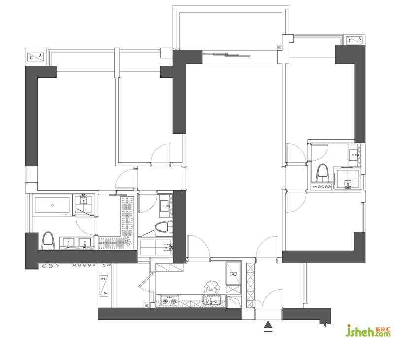 3、拆除主衛(wèi)浴缸,調(diào)整主衛(wèi)潔具位置,縮小主衛(wèi)空間并順勢增加衣帽間空間。