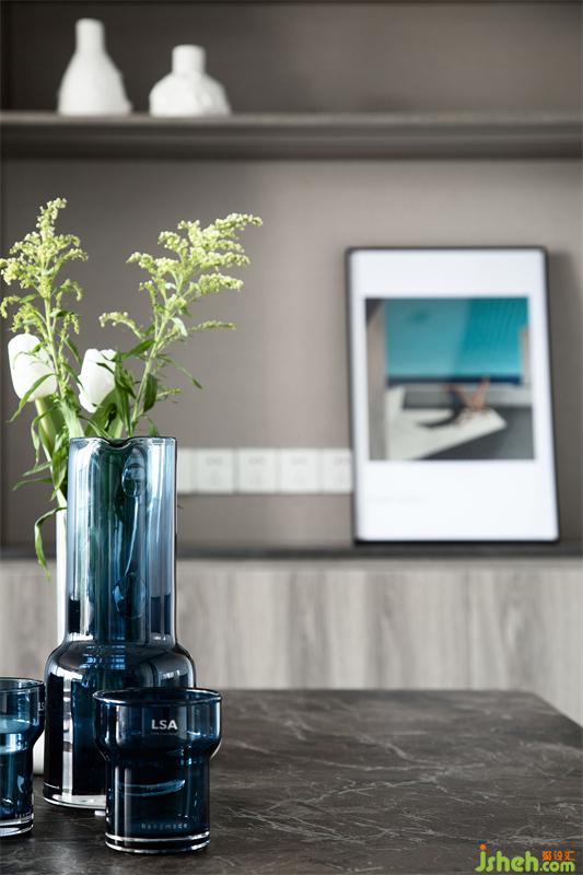 餐廳收納井然有序,靠墻兩側(cè)是到頂收納柜+局部展示柜,家居設(shè)計(jì)封閉式與開放式的結(jié)合,滿足了多種物品的收納需求。木制品極窄收邊口展現(xiàn)了精湛的工藝,凸顯業(yè)主極高的生活品味和細(xì)節(jié)追求。