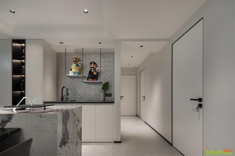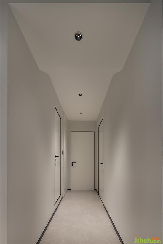 過(guò)道區(qū)域線條感十足,房門(mén)都是極窄邊框的設(shè)計(jì),和內(nèi)嵌踢腳線相呼應(yīng),深圳家裝設(shè)計(jì)黑白灰中性色塑造簡(jiǎn)約的科技感。告別千篇一律,每一處細(xì)節(jié)都賦予靈性的質(zhì)感。
