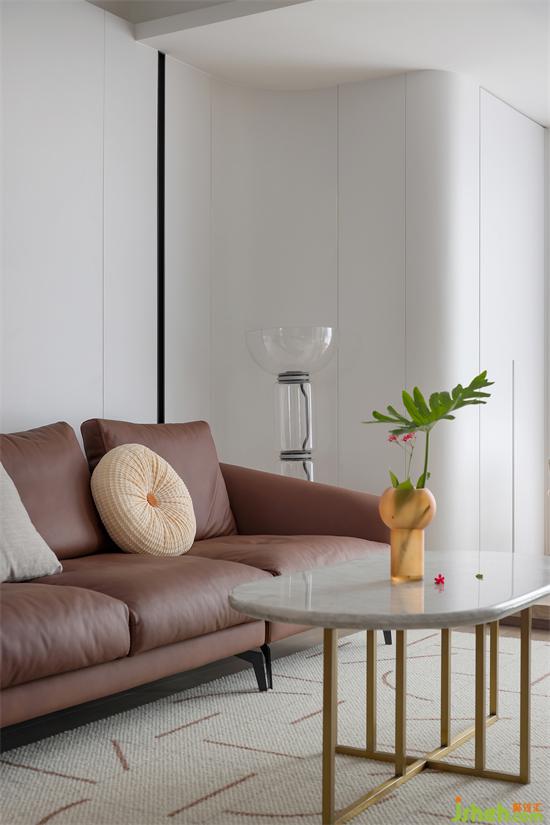 看到沙發(fā)純白背景區(qū)域有個(gè)大弧轉(zhuǎn)角嗎?我不說(shuō)你一定不知道這里面藏著雨水管吧?!同時(shí),里面還是一組空間巨巨巨巨大的收納柜!同樣利用弧形元素處理陽(yáng)角位置既與空間相呼應(yīng),弱化棱角,再也不用擔(dān)心調(diào)皮娃磕磕碰碰了。