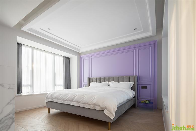 接下來就到空間的另一個重頭戲了——主臥!誰看了不會夸一句,這主臥門的設(shè)計也太有儀式感了吧?!定制的到頂黑色雙開木門+金屬拉手,天花設(shè)計了X型燈光,雙手推開門的那一刻,仿佛跨入了另一個世界。