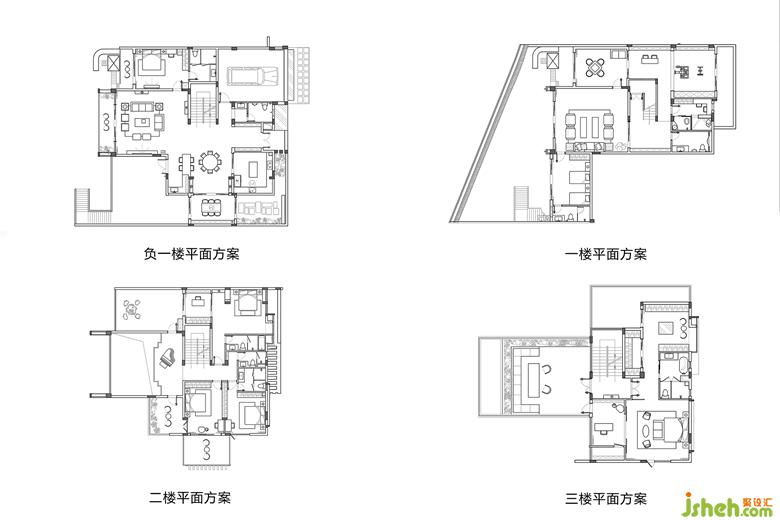 ?負(fù)一樓設(shè)計健身房、茶室、儲藏室、麻將室等多功能會客空間,增加室內(nèi)利用率。獨(dú)立的茶室可以看向前后兩邊庭院,視野開闊通透。