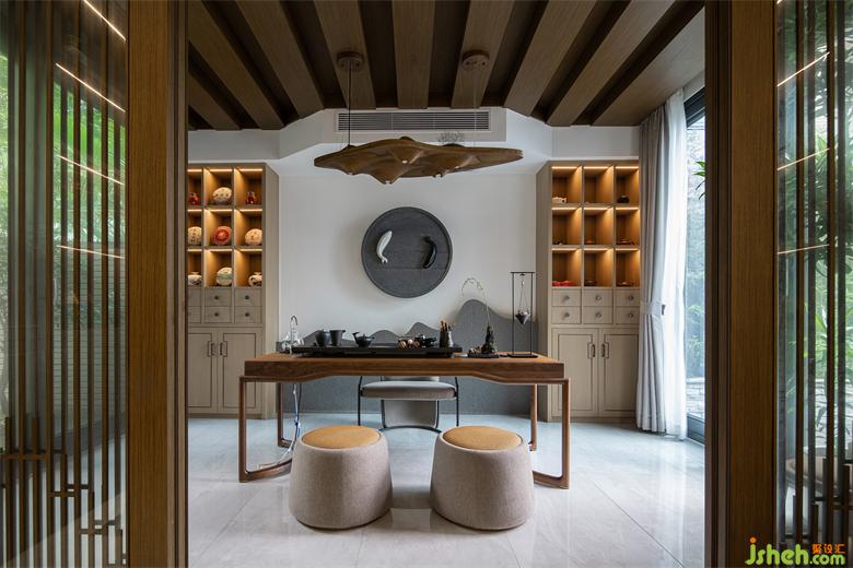 茶室的靜謐給業(yè)主一個(gè)自我思考的空間,這個(gè)品茶的空間在本案是一個(gè)亮點(diǎn)設(shè)計(jì)。別墅裝飾左右采光,能看見(jiàn)花園的風(fēng)景,十分有格調(diào)。空間大面積采用木質(zhì)裝飾,桌子、柜子、門、燈、吊頂營(yíng)造著古典氣質(zhì)。
