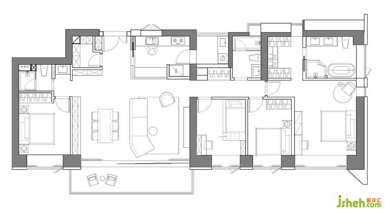 ?客廳較大較通透,景觀好,無餐廳空間,家裝設(shè)計(jì)師規(guī)劃餐廳需要注意空間的格局比例,保持通透與開闊。