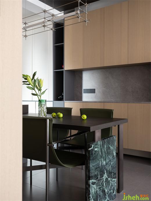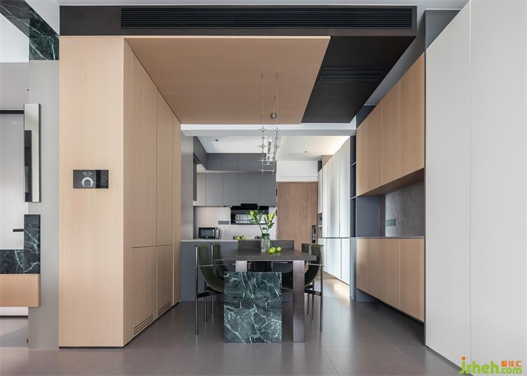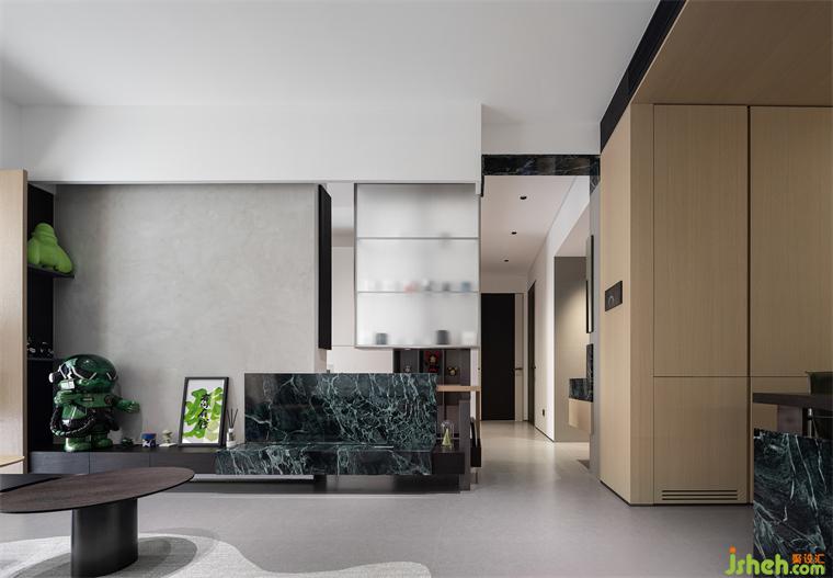 4、普拉達(dá)綠大理石,巧妙融入空間的設(shè)計(jì)與結(jié)構(gòu)當(dāng)中,增加體量感與質(zhì)感。