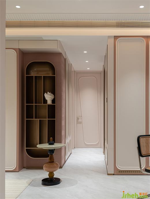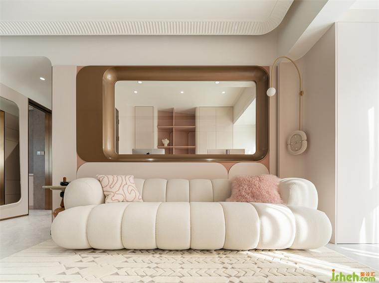 3、主臥床頭背景墻后移,床180調(diào)轉(zhuǎn),解決主衛(wèi)門正對床頭的問題;床尾利用門后空間放置衣柜,巧妙提升收納功能。