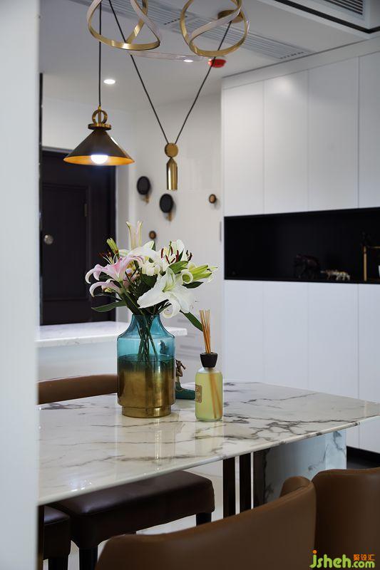 入門后的紅酒與結(jié)合了金屬元素的餐桌,彰顯著高品質(zhì)的生活氣息室內(nèi)設(shè)計(jì)師。在這里,品著甘醇的酒,聽著悠然的歌,愜意又自在。