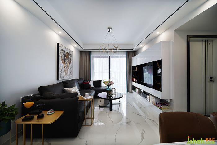 黑色的電視柜與電視本身渾然一體,兩側的黑色展示柜使之產生視覺延伸的效果。在外面走得越遠,便越是想擁有一個屬于自己的、舒適的家。墻上大大的藝術壁畫,仿佛也在說著以前的故事……