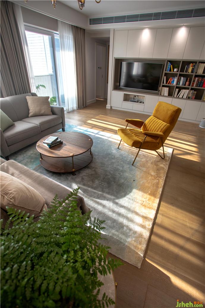 整體硬裝的色調(diào)以暖灰色為主,干凈給人恬淡安靜的視覺(jué)效果室內(nèi)設(shè)計(jì)師,這樣五顏六色的書(shū)籍融入其中也不會(huì)覺(jué)得雜亂無(wú)章,儲(chǔ)存量超大的一體柜子,放置電視收納兩不誤。