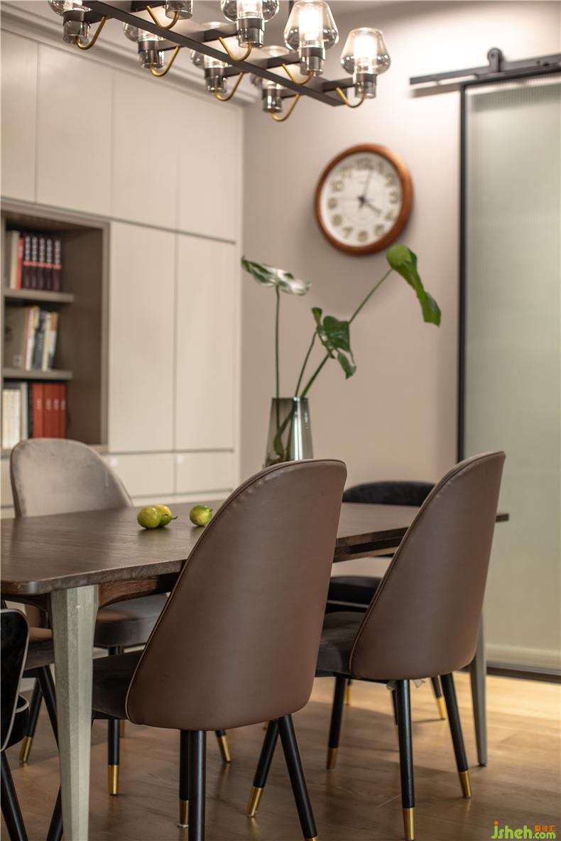 開(kāi)放式的客餐廳,太過(guò)空曠的空間給人感覺(jué)冷清,所以地板色調(diào)我們選擇了咖啡色系,L小姐在選擇地面材質(zhì)時(shí)也是在地磚和地板兩者間選擇考慮了很久,為了營(yíng)造家庭的溫馨感最終還是選擇了地板,小朋友光腳在上面玩耍也不會(huì)覺(jué)得冷冰,木屬于大自然的贈(zèng)予,在質(zhì)感上更加樸實(shí)有溫度。