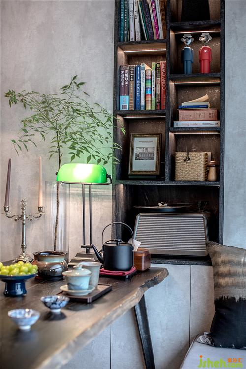 木桌木椅,綠色植物,還有填滿柜子的書籍物件等等,文藝又充滿情調(diào),讓家多了幾份煙火氣,而不至于太空虛冷落。