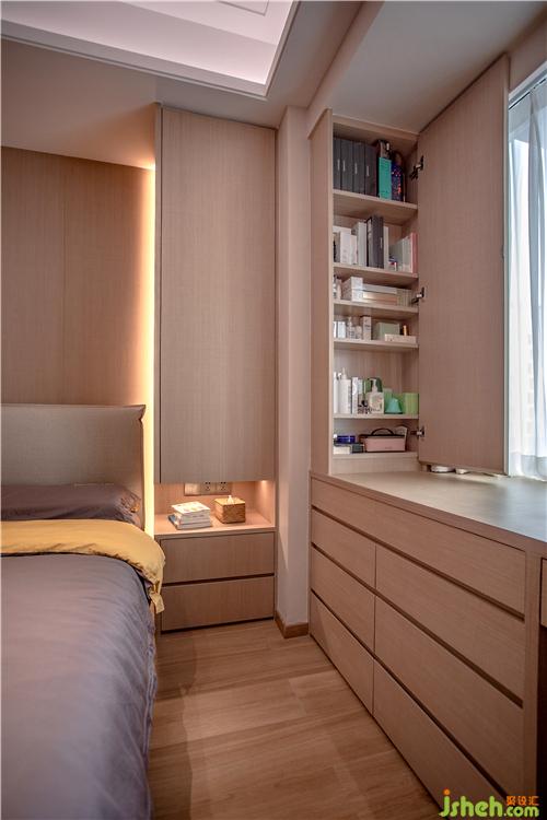 臥室的格調(diào)溫馨,陳設(shè)素雅。暖系燈光營(yíng)造出生活的實(shí)在感,讓睡眠的氛圍格外的溫馨,舒心。同時(shí),我們可以看到臥室安裝了很多隱藏式柜子深圳室內(nèi)設(shè)計(jì)師,基本上是無(wú)處不在。一來(lái)可以滿足主人的收納需求,二來(lái)維持桌面的干凈整潔,而不是堆滿雜物的感覺(jué),讓貓也可以任意地上竄小跳,不至于被磕磕碰碰。今夜,適合做一場(chǎng)好夢(mèng)。