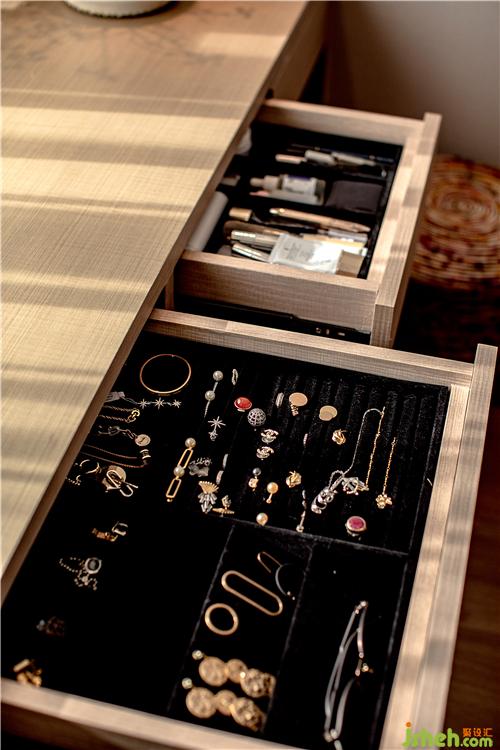 柜子都是現(xiàn)場定制的,完美貼合戶型,桌柜一體,呈現(xiàn)整體統(tǒng)一的視覺享受。柜子之多,方寸之間皆可藏物,令到桌面可保持干凈整潔,無一障礙之物,而打開柜門,卻又能看到充實的一面。
