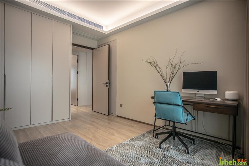 次臥改造成多功能房間,既可以辦公,又可以接待客人,甚至還是孩子的鋼琴房。簡(jiǎn)潔清麗,配色暖中帶一點(diǎn)藍(lán)色點(diǎn)綴,十分亮眼。