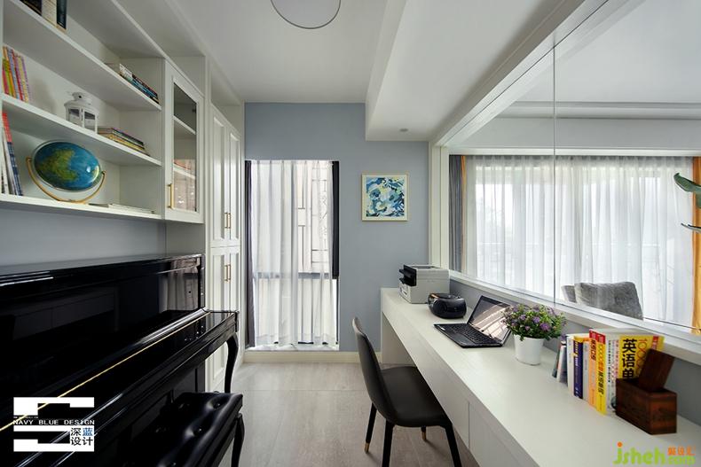 書(shū)房與客廳之間原有隔墻,改造成玻璃半墻后原先狹長(zhǎng)的書(shū)房格局在視覺(jué)上得到延展,整個(gè)空間顯得更為通透,溝通互動(dòng)性更強(qiáng)。