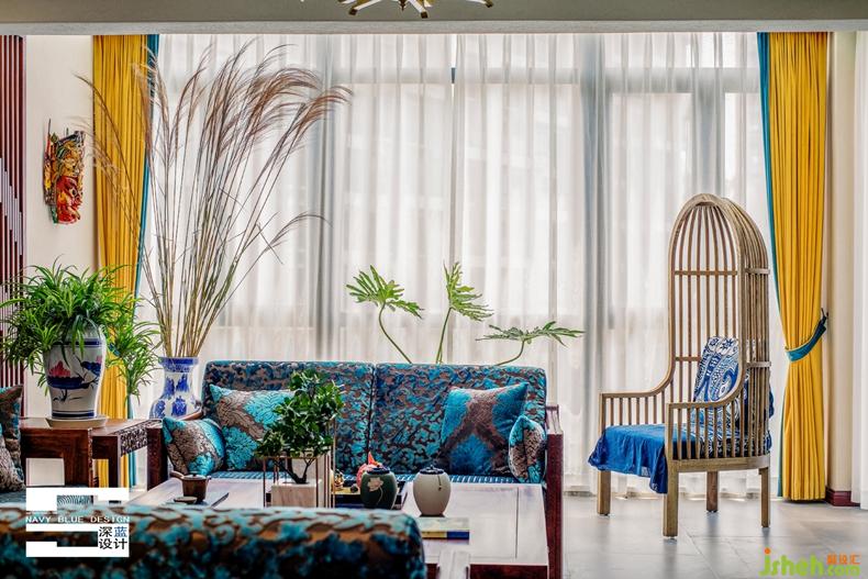 本案業(yè)主是貴州安順人,離開家鄉(xiāng)后,走過平湖煙雨后,細(xì)細(xì)咀嚼平生,仍覺少時家鄉(xiāng)的記憶更為有味。那深嵌在年少時光里的黃果樹瀑布、蠟染與地戲,總想找一些方式將它融入現(xiàn)今的生活。