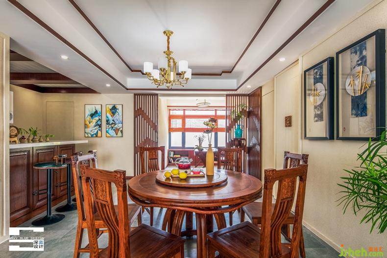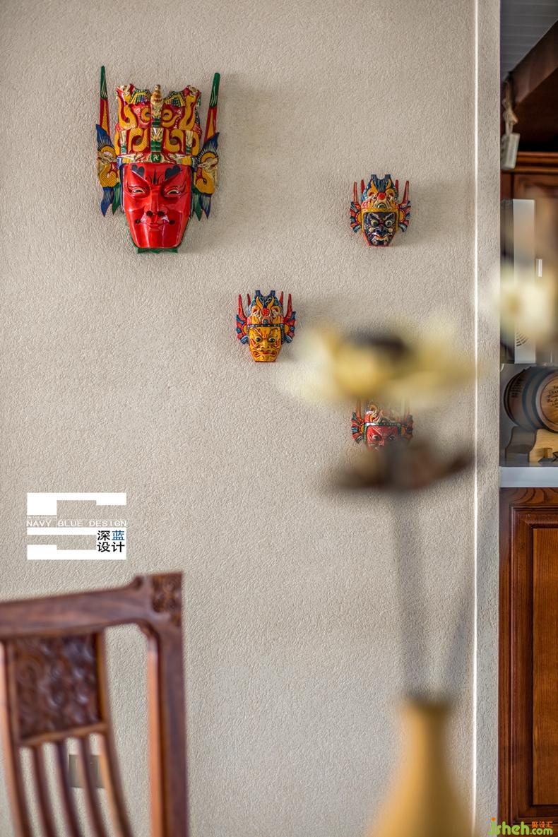中式屏風(fēng)隔而不斷,搭配三兩幅實(shí)物畫(huà)與幾支木蓮,頗有一種禪意在其中。地戲的面具錯(cuò)落相間,獨(dú)一處景,亦成一份流年記憶。