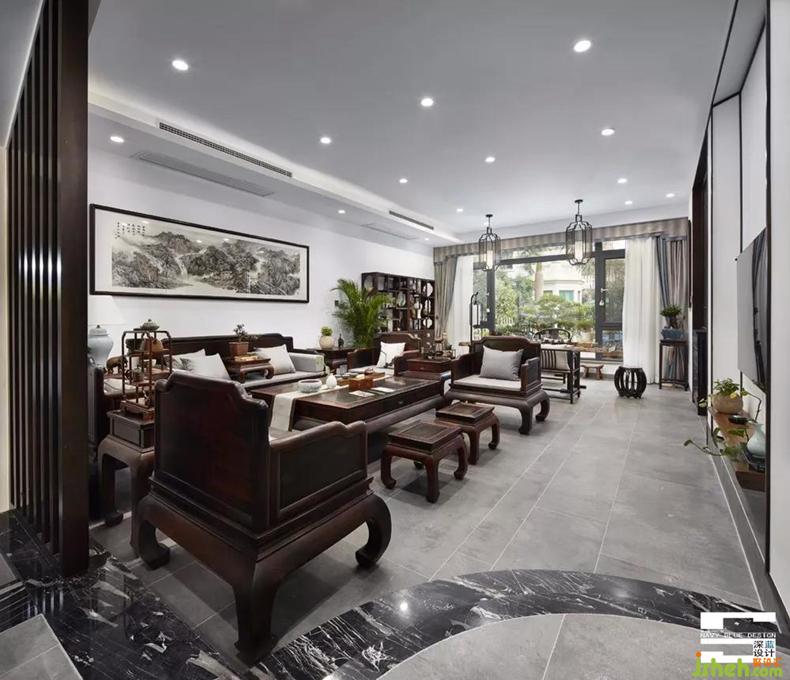 方頂圓桌,方圓有度,即使紅木餐桌椅選用了老料深色,但沒有厚重感,反而帶來沉穩(wěn)、安靜的氛圍。