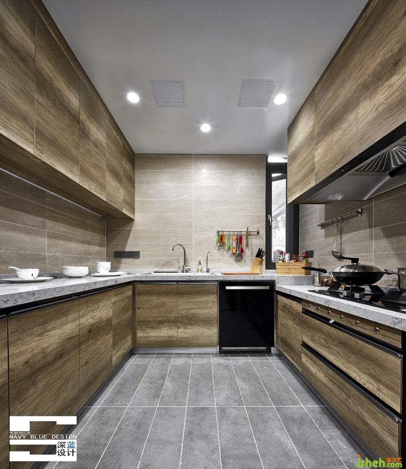U型功能臺的中廚,在轉(zhuǎn)角處巧妙設(shè)置了高度差,炒區(qū)域矮一點(diǎn),洗區(qū)域高一點(diǎn),真正人性化的考慮就在這些細(xì)節(jié)之處。
