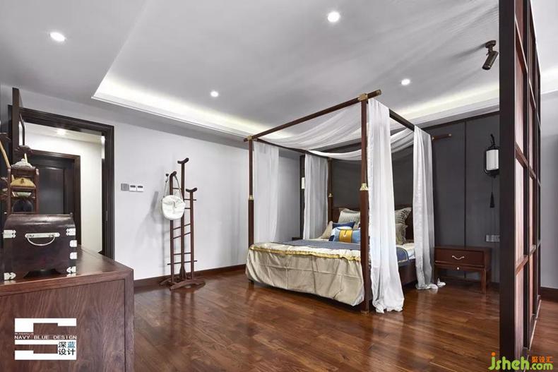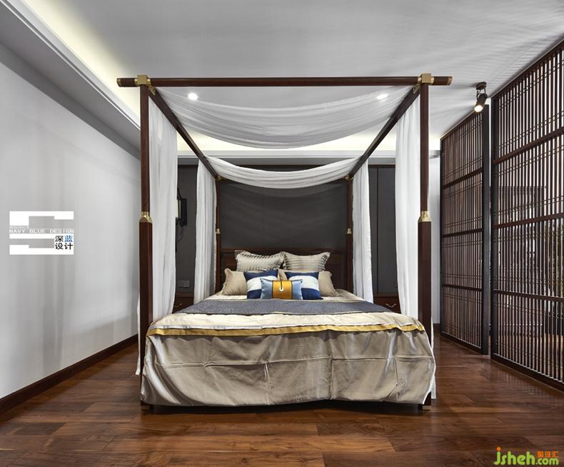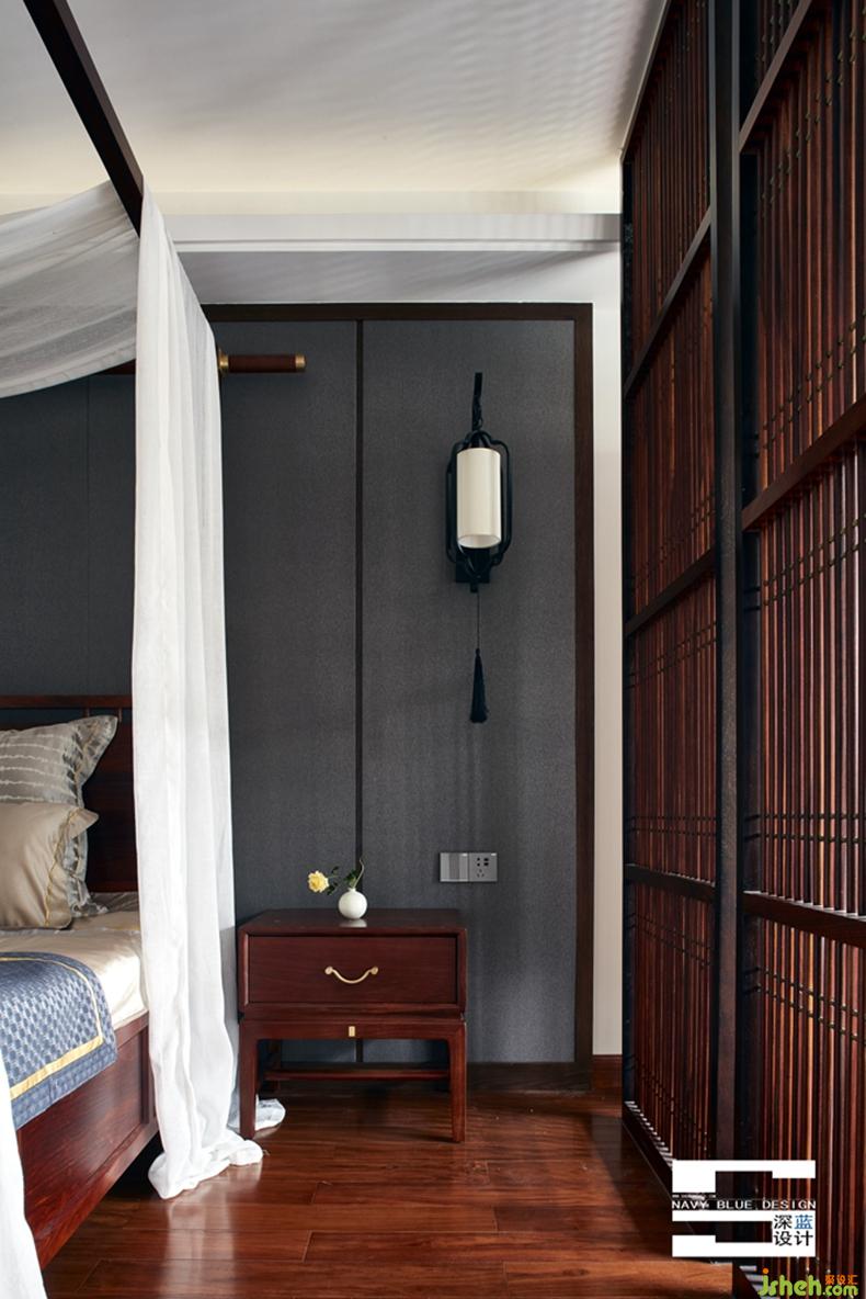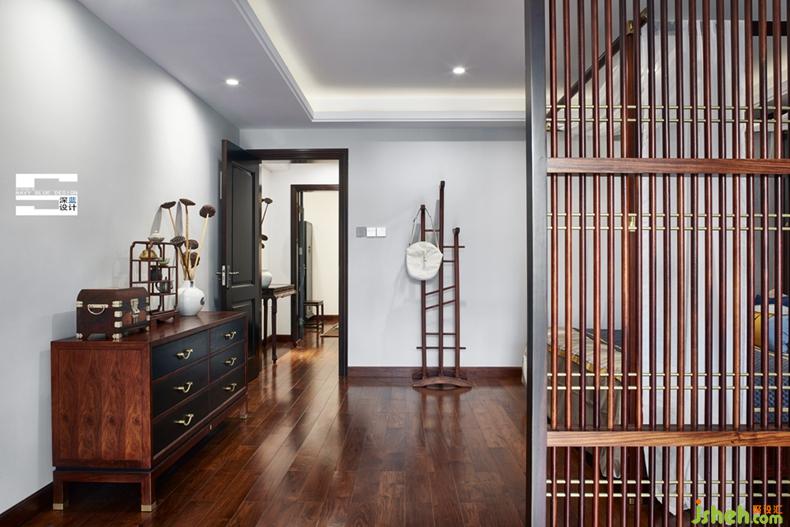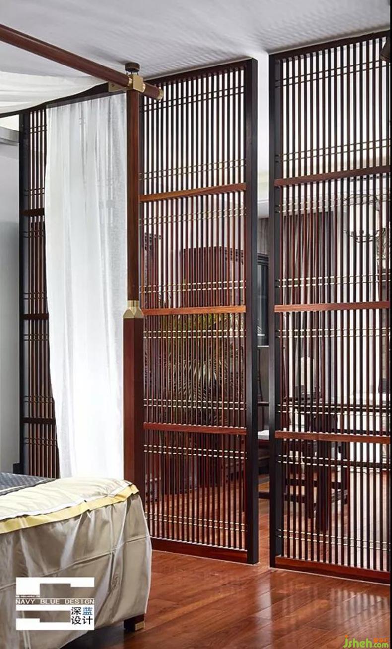 臥室空間與書房空間隔而不斷,細(xì)條格柵不僅分割了空間功能,也帶來了光影的變化。