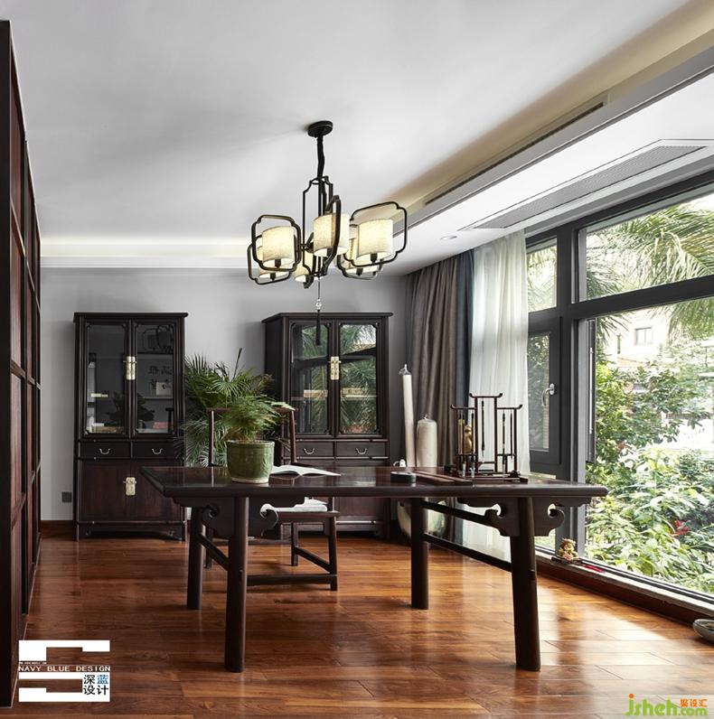長(zhǎng)條桌案,筆墨書香,小景點(diǎn)綴,賞心悅目。