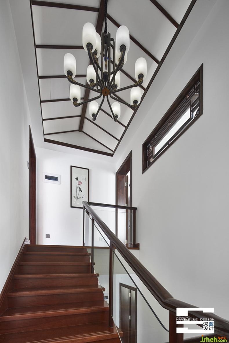 樓梯間天花設(shè)計(jì)采用木架斜屋頂造型,木質(zhì)溫潤(rùn)的觸感、淡雅素凈的配色及掛畫(huà)的點(diǎn)綴為這上上下下的空間簡(jiǎn)單增色。