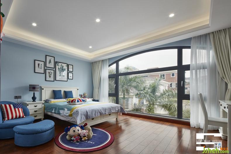 男孩房以藍(lán)色為主調(diào),寬敞明亮,業(yè)主姐姐很貼心的給兩個(gè)寶貝都添置了小沙發(fā)小地毯。雖有一起活動(dòng)的空間,但在自己的房間里,也一樣可以學(xué)習(xí)、休息,玩耍。