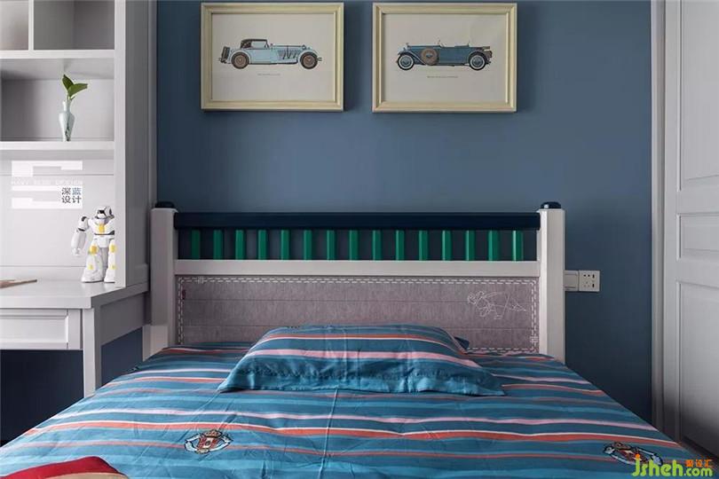 兒童房的光線非常充足,純凈的藍(lán)色墻紙搭配白色書桌,點(diǎn)綴多元素的童趣玩具,即寧靜又活潑。讓美麗的光線和生動(dòng)的色彩陪伴孩子成長。