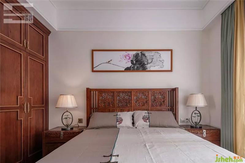 坐看云舒,看一季花開。父母房延續(xù)主臥基調(diào),只在背景畫、臺燈、床品上稍作改動,更為淡然素雅,安住似水流年。