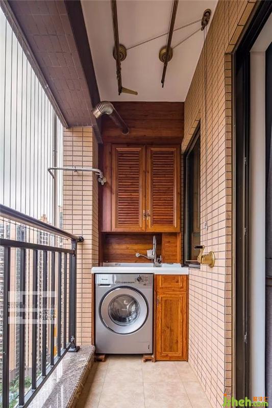 陽臺雖窄小,但五臟俱全。陽臺柜巧妙地把洗衣機和收納融合在一起,保證空間的美觀。